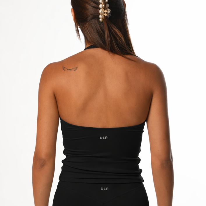 ✔ Halter neckline with V-front crossover